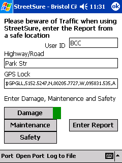 The StreetSure system has been designed for flexibility, we believe the system can be adapted for many council uses where classification or action needs to be assessed and recorded together with an accurate location for the work groups. The StreetSure field unit can also be used to help navigate - using a standard GPS mapping system, to the maintenance locations recorded in the database.